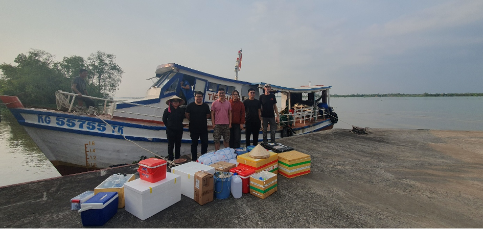 Sampling with french scientific boat ANTEA in the Mekong Delta coastal area (PLUME cruise campaign june-july 2024 (Credit Julien Némery).